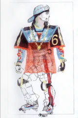 The Hip Hopper costumes draw on many stereotypical, dated elements of "Rap / Hip Hop / Street" fashion. They wear backwards ball caps or "gang" bandanas, over-size mesh-effect shirts with graffiti tags on them, and baggy pants. Contrary to other characters in the show, in their case the bare metal panel effect doesn't represent the character's bare skin. They also wear heavy gold "Bling" necklaces. Initially in the US Tour they wore their essential leather belts over the shirts, but later versions have slits in the the shirts through which the belt handles stick out.